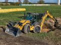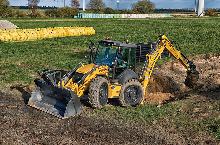 New Holland B115C — самая мощная модель среди экскаваторов-погрузчиков New Holland. Машина оснащена равновеликими колёсами и тремя режимами рулевого управления: стандартный, «крабовый ход» и «след в след».